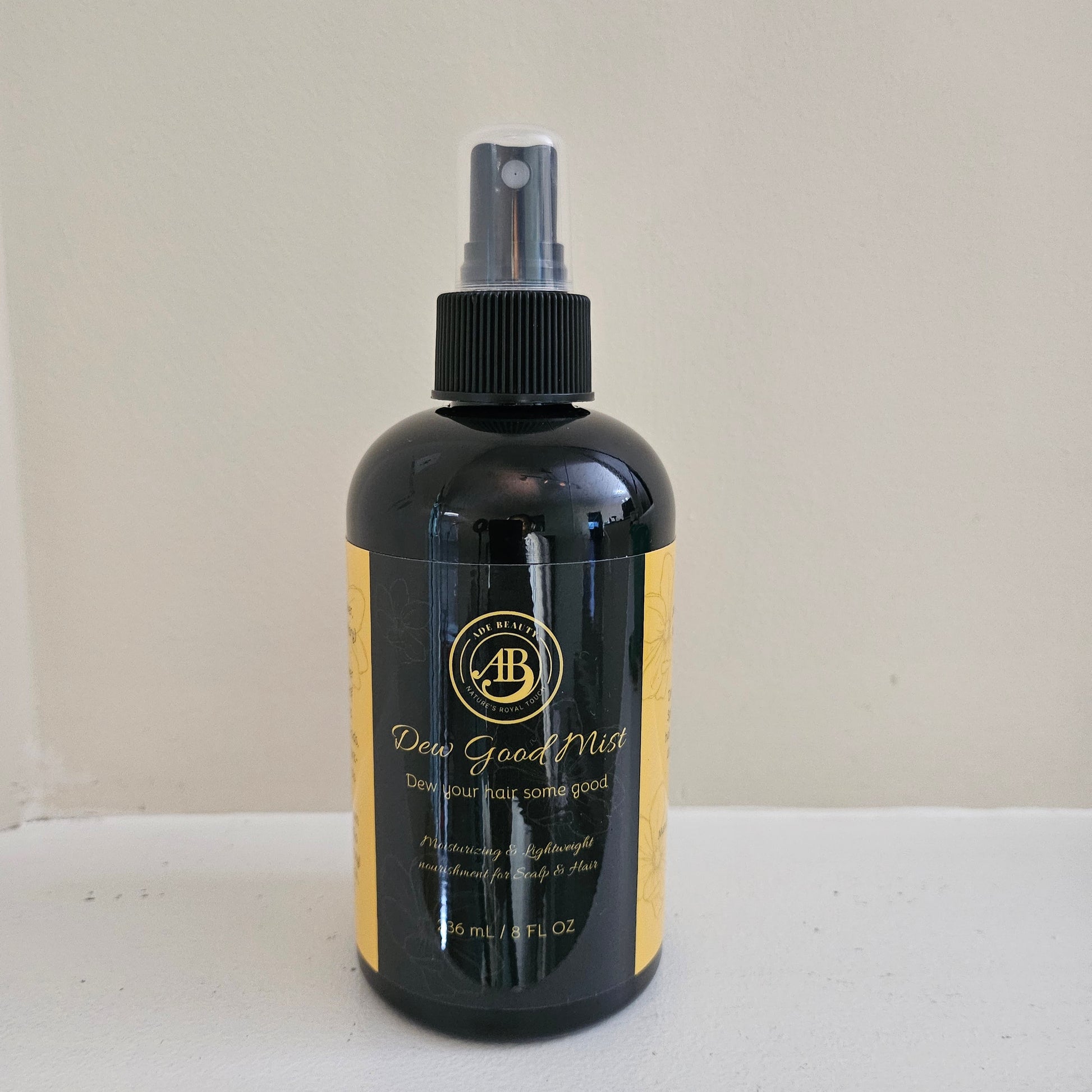 Dew your hair some good. Dew Good Mist delivers instant hydration and lasting freshness for braids, locs, twists, and natural curls. This lightweight mist quenches thirsty strands, keeps protective styles soft and healthy, and soothes the scalp without any buildup or greasy feel. Designed for daily use, it helps keep your hair strong, shiny, and full of life.